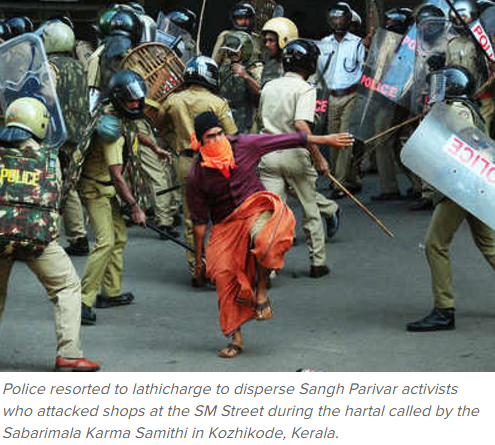 Kerala, God’s own country has saddened and ashamed us when police resorted to lathicharge to disperse Sangh Parivar activists who were picketing at many places during the Thursday hartal called by the Sabarimala Karma Samithi in Kozhikode, Kerala.