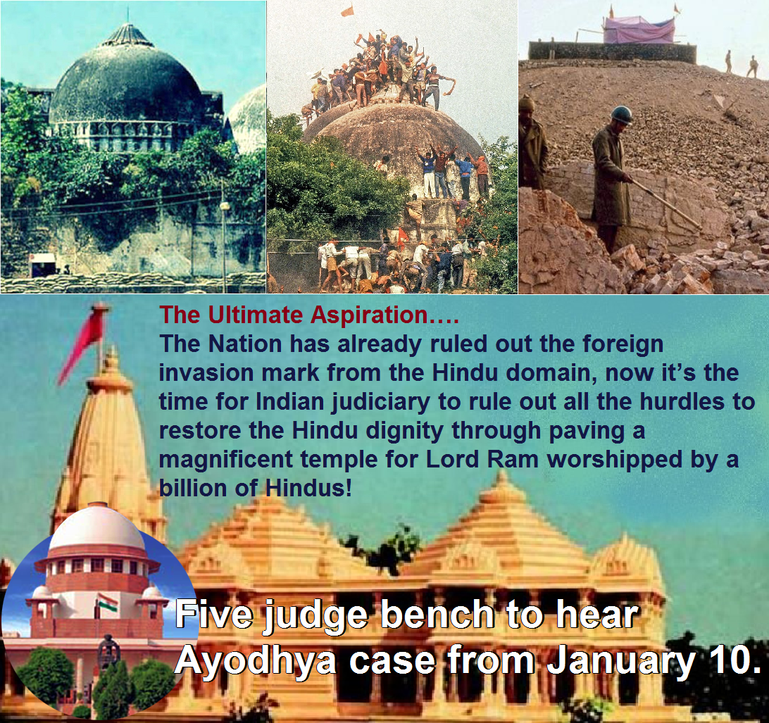 The Nation is now waiting for the adjudication, speedy hearing and the final judgement of Ayodhya matter to clear all hurdles to start the construction of Ram Temple at Ramjanmabhoomi to fulfill dream of 1 billion Hindus of the world so that Lord Ramlala can be housed in a beautiful and magnificent temple, ending his exile in a tent house since 6th Dec 1992.