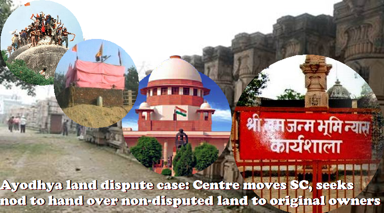 Express Web Desk | New Delhi | Jan 29, 2019:: The Centre Tuesday moved Supreme Court asking that it lift the status quo on non-disputed land around the disputed site and hand over surplus to the original owners. In its writ petition, the Centre said it had acquired 67 acres of land around the 2.77 acre disputed Ram Janambhoomi-Babri Masjid site.