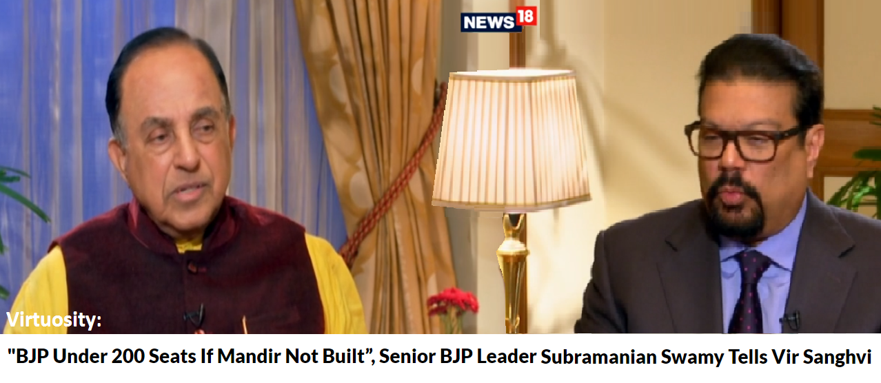 “BJP will get under 200 seats if Ram Mandir not built”, Dr Swamy tells Vir Sanghvi in an New18 interview aired on Feb 2nd.