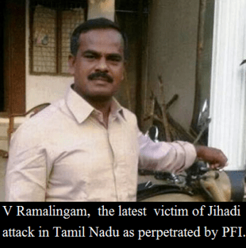 The deceased was identified was V Ramalingam who had some links with various Hindu Organisations active to resist Love Jihad and Islamic Conversion of the Dalit Hindu people in Tamil Nadu.
