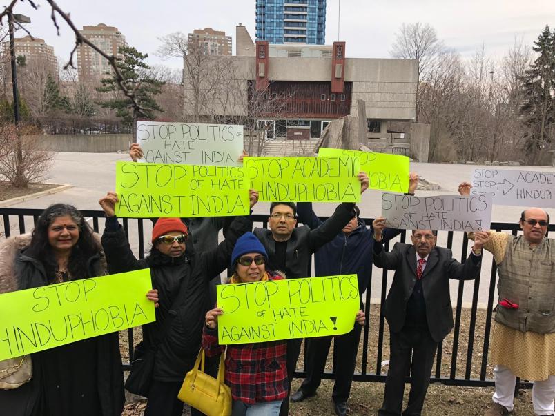 Outside the Islamic Centre, a handful of Hindu Canadians protested holding placards that demanded an end to Hinduphobia and anti-India hysteria in Canada, but not a single newspaper dared to report on the event lest Islamists get upset.