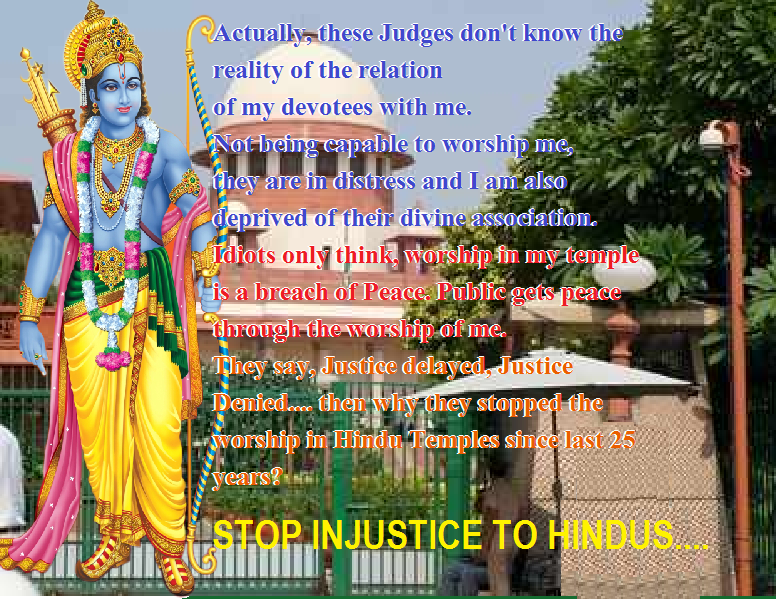 The Chief Justice of India and one of his accompanying Justice think, intention and petition for getting the permission of worship in Hindu temples which had been stopped for last 25 years, are simply breach of peace and holds no importance for the rights of Hindu worship. Fortunate enough, the appeal was just turned down with a stricture, but the petitioners was not charged with a penalty of Rs 5 lakh for filing the same petition in Allahabad High Court in an earlier occasion!