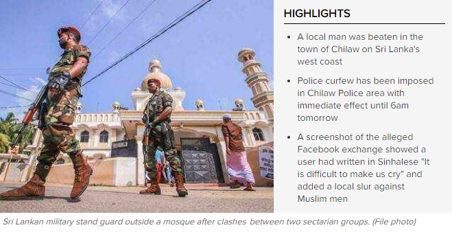 Mosques attacked by Christian people in Sri Lanka town after Facebook row, curfew imposed.