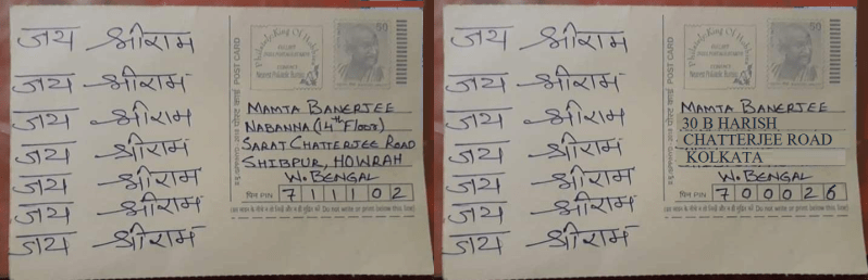 Though ‘Glory To Lord Rama’ chanting or sloganeering before WB CM and TMC supremo Mamata Banerjee has stranded her an acute psychological patient of ‘Jai Shri Ram Phobia’, Indian postage department is seeing now a chunk good business with a greater hope of selling at least 20 lakh post cards worth Rs. 10 lakhs all over India in the Jai Shri Ram letter venture.