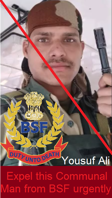 The matter has been tweeted by many to President of India. PM Modi, Home Ministry under which BSF functions, Home Minister Amit Shah, Hindu think Tank Dr Subramanian Swamy and others. But, no action against Yousuf Ali is perceived so far. People of these types of mindset like Yousuf Ali don’t deserve to be in the FIRST LINE FORCE like BSF.