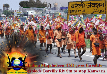 Indian Mujahideen gives threat to explode Bareilly Rly Stn to stop Hindu Kanwar Yatra.