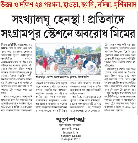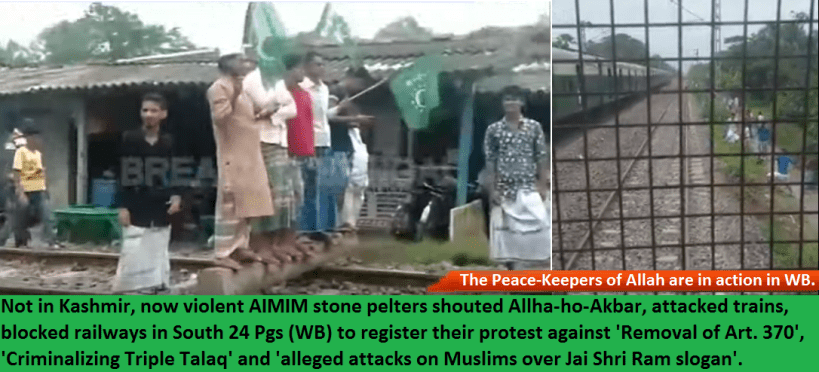 The AIMIM stone pelters heavily attacked trains, blocked railways at Sangrampur Railway Station (Eastern Railway) areas in South 24 Parganas in West Bengal to register their protest against Removal of Art. 370, Criminalizing Triple Talaq and alleged attacks on Muslims over Jai Shri Ram slogan.