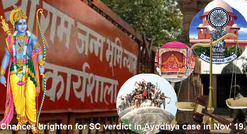 Dhananjay Mahapatra | TNN | New Delhi | Aug 31, 2019:: Chances of the Supreme Court giving a final verdict in November in the 70-year-old litigation for ownership of the 2.77 acre Ram Janmabhoomi-Babri Masjid land in Ayodhya brightened as all Hindu parties, who were awarded two-thirds of the disputed land by the Allahabad High Court, have completed their arguments. The hearing had started on August 6.