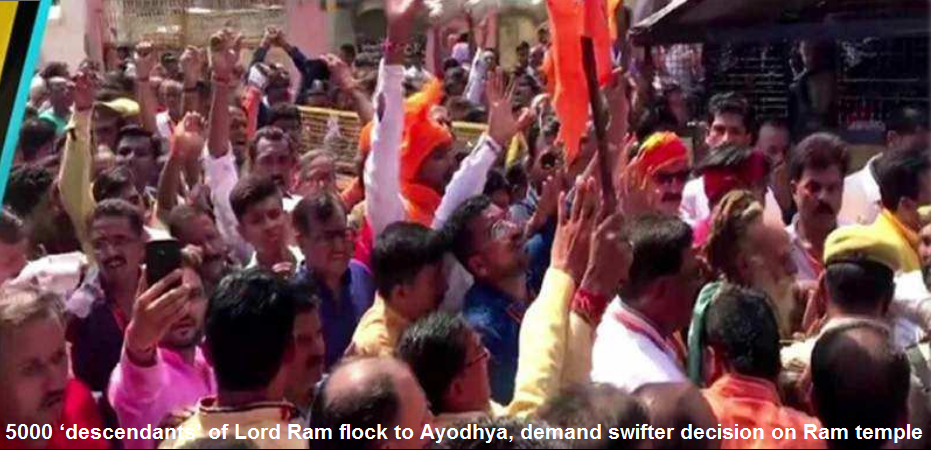 A leader of Raghuvanshi Samaj, Kuldeep Patel Raghuvanshi told ANI: Respected Judges in the Court of law must not hurt Hindu sentiments by saying, where are the descendants of Lord Rama! We are here in Ayodhya in thousands to register ourselves as descendants of Lord Rama. We will be coming here in Lakhs in Ayodhya to prove as descendants of Lord Rama again if necessary!
