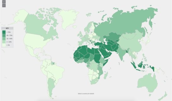 Above is the map that visually displays the number of Islamic countries or countries with a Muslim majority in the world.
