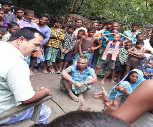 Jumman Shah | HENB | Araria | Sept 21, 2019:: In Farkiya Panchayat under Baunsi Police Station of Taniganj in Araria district in Bihar, an incident of forced Islamic conversion of a Hindu widow has come to light. A middle-aged Muslim married man and a Hindu widow were tied with a rope and could be seen beaten with a stick by the villagers in a viral video. They were accused of having an illicit affair. The woman was then fed beef forcefully against her will, converted to Islam and married off to the Muslim man before being cast away from the village.