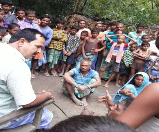 The video of the crime went viral on social media. The middle-aged man has been identified as one Akbar. The incident happened on the 13th of September. According to reports, when Akbar went to his paddy field, several villagers took him to the woman’s house on some pretext of extra marital affairsand tied them there in a open place in the middle of the village in broad day light. The woman was fed beef and bones by the violent Muslim mob. All of this was done under the leadership of the Muslim Sarpanch (village head), Mohammed Aslam. Now a concerted effort is being made to hush up the incident.