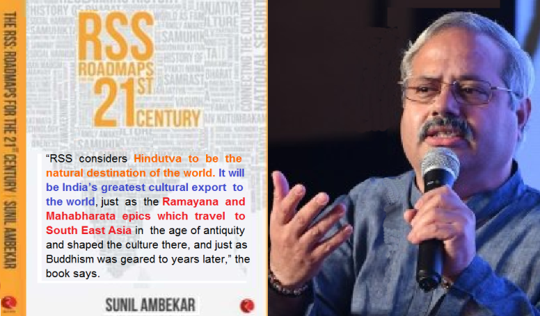 “RSS considers Hindutva to be the natural destination of the world. It will be India’s greatest cultural export to the world, just as the Ramayana and Mahabharata epics which travel to South East Asia in the age of antiquity and shaped the culture there, and just as Buddhism was geared to years later,” the book says.