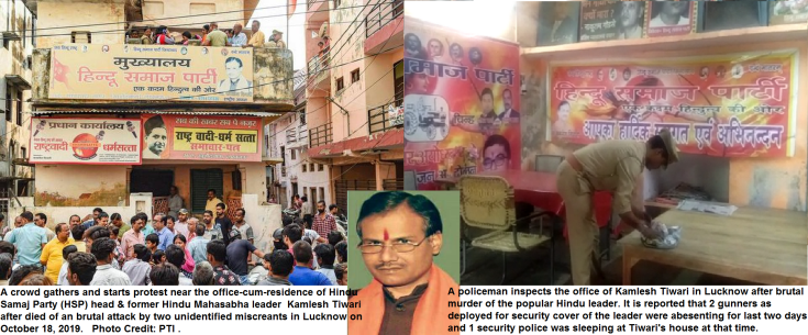 Eminent Hindu Interlocutor and Hindu Existence Website Editor, Upananda Brahmachari (who had personal acquaintance with Kamlesh Tiwari) blamed the UP Police for its gross irresponsibility on non-discharging the duties of police/constable as deployed for the security cover of Hindutva leader Tiwari.