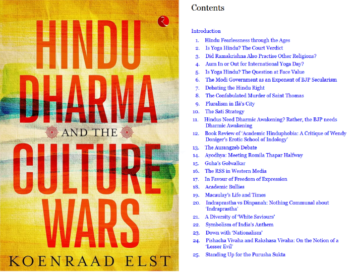 Bordering over the different dimensions of religiosity and faith Hindu Dharma and the Culture Wars is a praiseworthy attempt by Koenraad Elst. The author meticulously dwells on the notion of Hindu dharma and its antagonist forces that are always on the prowl to play the shoddy politics of polarisation and tarnish the image of Hindu dharma. These destructive forces are not only foreign agencies. They emerge from within the Hindu dharma also.