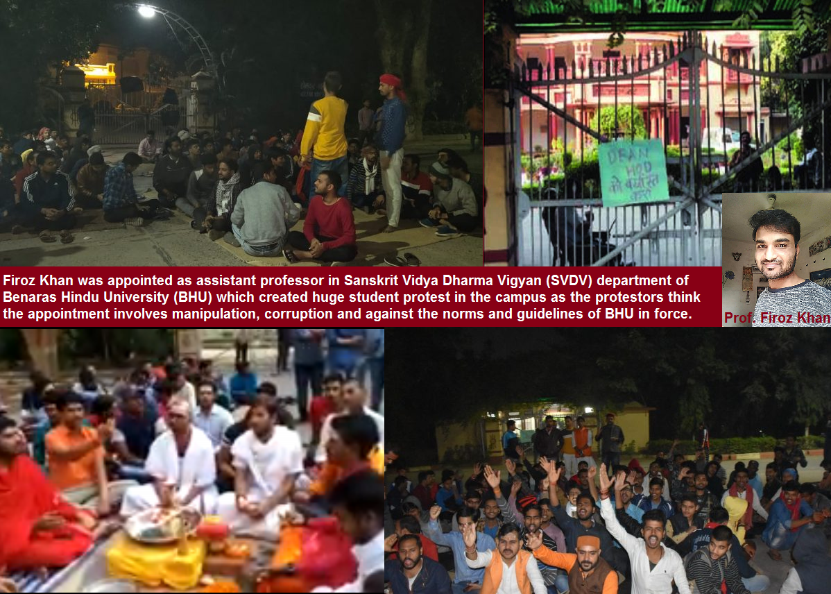 Ravi Agrahari | HENB (in arrangement with Op India) | Varanasi | Nov 18, 2019:: The appointment of one Firoz Khan in Banaras Hindu University (BHU) as a professor to teach the subjects in Sanskrit Vidya Dharma Vigyan (SVDV) Department sparked a huge agitation among the students of SVDV Dept in BHU.