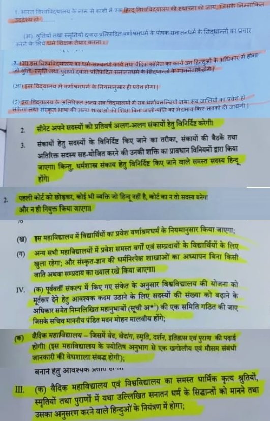 A Hindu University be set up in Kashi which will be a central university with the following goals: