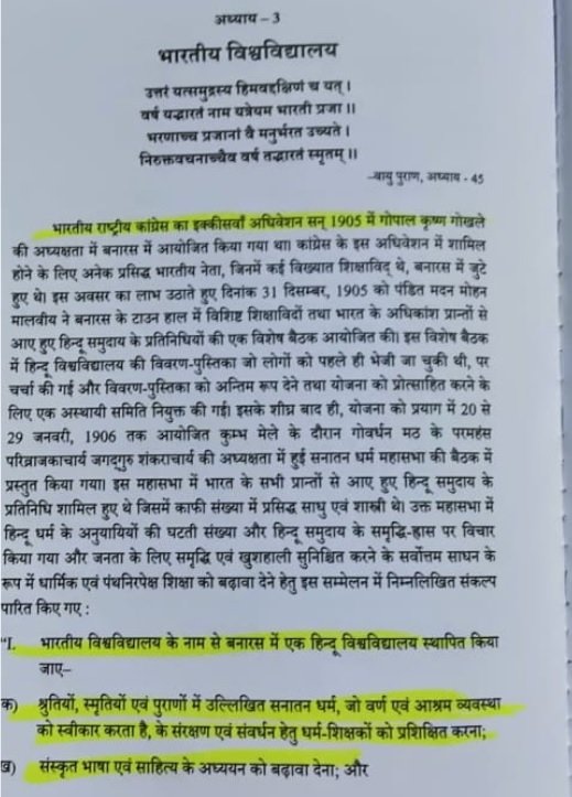 The students studying in SVDV, BHU also shared some documents with OpIndia on basis of which they are fighting this fight to keep Madan Mohan Malviya’s dream alive. Student leader Chakrapani Ojha said that years ago a national general assembly held in Kashi in December 1905. On the same day, under the chairmanship of V N Mahajani a huge gathering took place in the town hall of Kashi. This suggestion was put forth in front of various representatives of religions and educationists. Even there everyone had welcomed setting up a Hindu university. On 1st January 1906, it was announced in a pandal of Congress that a Hindu university will be set up.