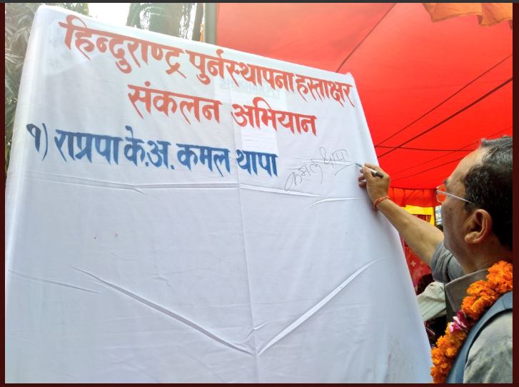 RPPN Chief Thapa held a signature campaign for reinstatement of Hind Rashtra in Nepal, in April 2019. (Pic. Hindu Existence Archive).