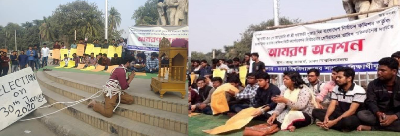 Sankirtan Das | HENB | Dhaka | January 16, 2020:: The Hindu students have been agitating for the deferment of the City Corporation poll day as Saraswati Puja is the second biggest festivals of Hindus in Bangladesh. On Tuesday and Wednesday also the students had protested in the Dhaka University area on this issue.
