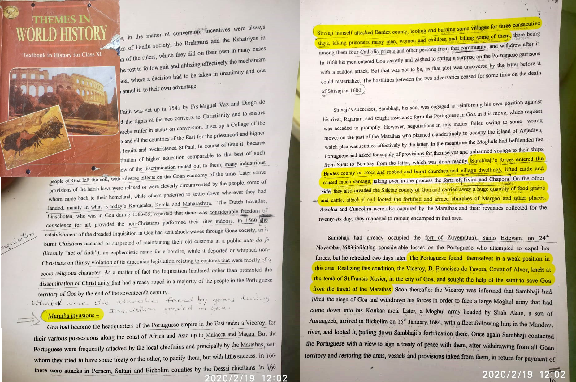 According to IANS, the class XI World History textbook claims that when Maratha king Shivaji attacked Goa in the late 1600s, his forces not only plundered the countryside, but also killed prisoners, including men, women and children as well as Catholic priests. Another section in the book describes Shivaji’s son, Sambhaji, as a plunderer, who ravaged the Goan countryside.