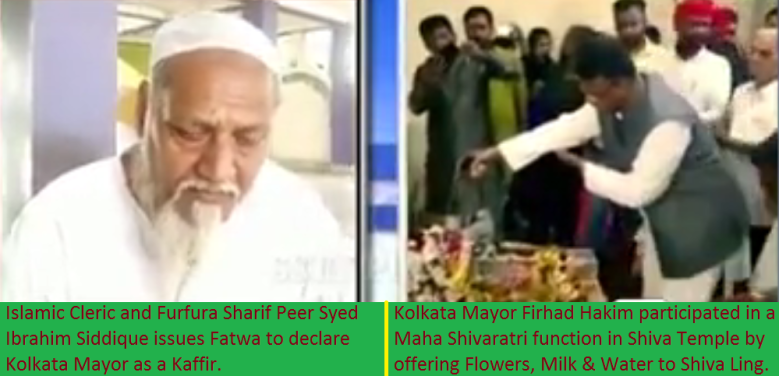 Dolon Hazra | HENB | Kolkata | Feb 23, 2020:: Kolkata Mayor Firhad Hakim is no more a Muslim and he is termed as Kaffir after worshiping Lord Shiva during Maha Shivratri festival observed two days ago. This was opined and directed as a fatwa by Peer Syed Ibrahim Siddique, an veteran Islamic Cleric and one of the Headmen of influential Islamic shrine in Bengal, Furfura Sharif.