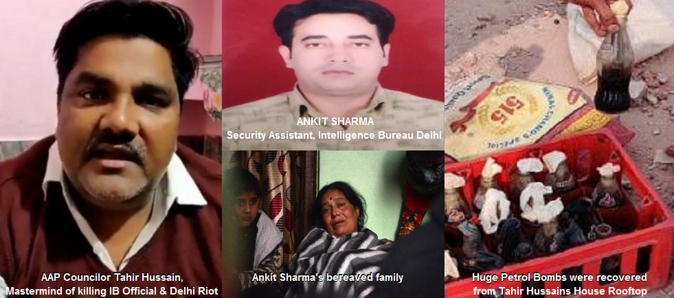 Huge numbers petrol bombs, stones, bricks, iron rods, acid pouches, high velocity sling shot and other material were recovered from AAP Councillor Tahir Hussain’s Rooftop in Khureji Khas area as Chand Bagh was the epicenter of north-east Delhi Riots. Tahir is suspected as a mastermind of Delhi Riots as orchestrated as an anti-CAA Protest trail.