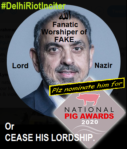These Delhi Riot inciters like Lord Nazir and Major Muhammad Arif were active very much active by spreading exaggerated anti-Hindu, anti-Modi and anti-BJP stories/news on Delhi Riots depicting Hindus as monsters and Muslims as victims, through their media friends in Guardian, New York Times, Washington Post, Time, Wall Street Journal, Gulf News, Independent and many others. Even, such evils like his lordship Nazir Ahamed might have pumped money in the Jihadi pipelines+ to make Delhi another Kashmir.
