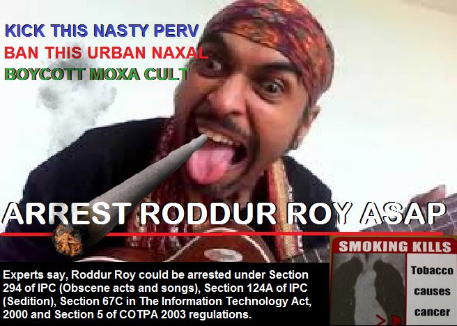Believing in his Moxa Culture, Roddur consumes Ganja (Cannabis sativa) in all his video uploads in youtube without any statutory warning. It is a gross violation of Section 5 of COTPA 2003 regulations. Hence, Roy could be grilled much earlier.