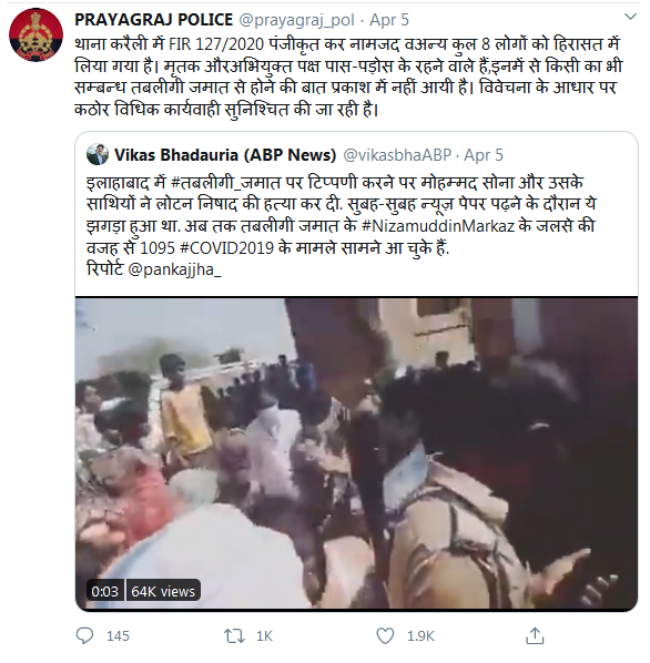 The Uttar Pradesh Police later said that eight people have been arrested in connection with the matter and also clarified that neither the accused, nor the victim have been found to be directly associated with the Jamaat. (But, they may be hidden supporters of Tabligh as concerned with the criticism agaist Tablighi Jamaat – Ed. HinduExistence).
