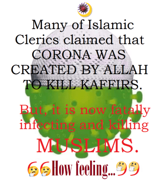 As a matter of fact, from the days of Covid 19 epidemic in Wuhan until it appeared as an – Corona pandemic, many of the Islamic clerics wanted to  describe it as a curse of Allah on the Kaffirs (non-believers).
