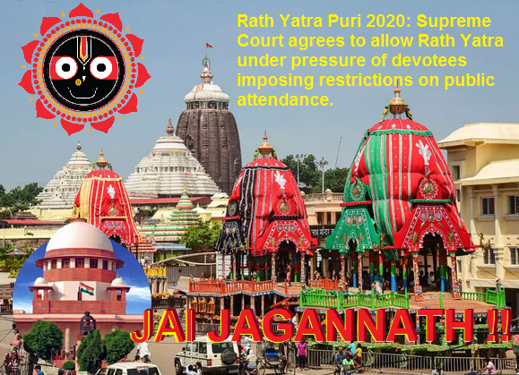 Upananda Brahmachari | HENB | New Delhi | June 22, 2020:: Jai Jagannath! Finally, Supreme Court of India agrees to allow Puri Rath Yatra this year under pressure of devotees with a strict restrictions for no public attendance.