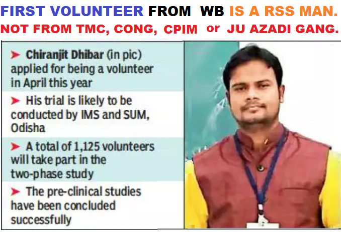 When the Hindutva activists are coming forward for the human trial for Covid 19 vaccine so far, there is no news of volunteering for the same cause from the Pseudo Secular Segments, Azadi Gangs, or from Evangelist Rackets or Jihadi groups in India.
