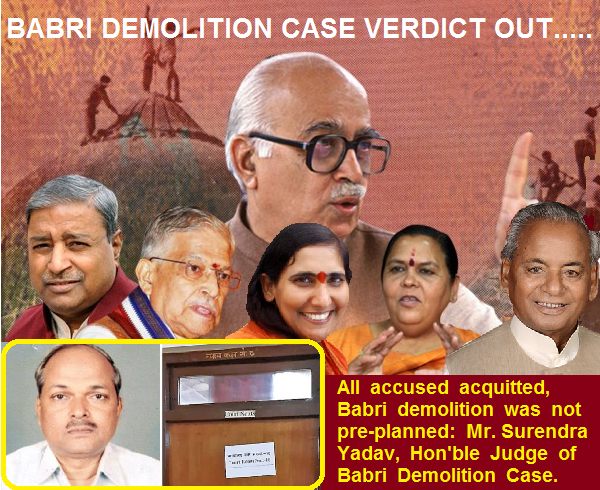 Reading out the judgment in its operative parts, Judge Surendra Kumar Yadav categorically pronounced, “All accused are hereby acquitted as the demolition was not pre-planned”.