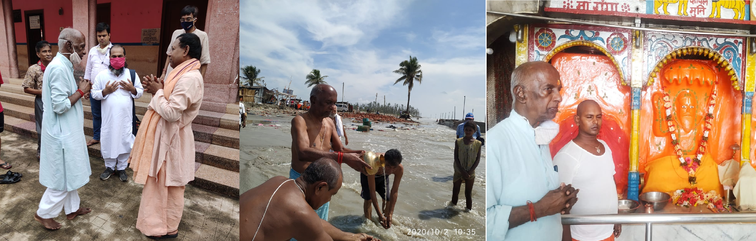 On Oct 2, Govindacharya offered holy water of Sri Ram Tapasthali to the confluence of Ganag at Sagar, performed rituals on the seashore and paid a visit to Sri Kapil Muni temple with his followers.