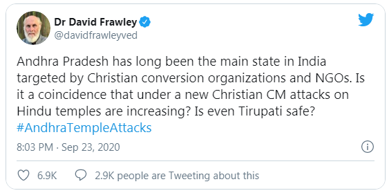 The posts were a targeted campaign against Andhra Pradesh Chief Minister Jagan Mohan Reddy and claimed that Hindus were facing a threat under his government. The hashtag employed was #AndhraTemplesInDanger.