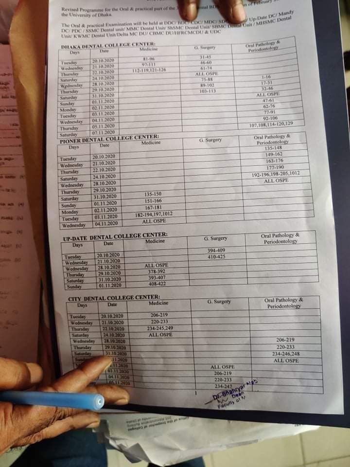 University of Dhaka’s Medicine Faculty has fixed the professional examination schedule for the Dental Students. The exam schedule clearly overlaps with Durga Puja. This is clearly intentional to put hurdles to observe Durga Puja by the Dental students. They did not publish the official routine to prevent any movement against this. But, a signed copy of the dean in respective faculty for the shocking schedule was flashed out in social media that caused a protest of the minority Hindu students in many quarters.