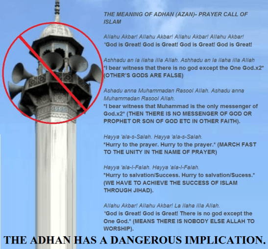 Beside noise pollution and disturbance to patients, students and elderly people; the phrase used in the Azaan five times, “There is no god but Allah” so announced loudly is highly offensive to beliefs of plurality in Hinduism.