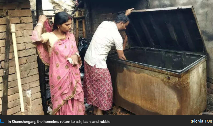 Sukumar Mahato | TNN | Shamsherganj | April 17, 2025:: With Murshidabad lurching back to a tense normalcy, families are returning home to trouble-torn Shamsherganj. However, even in their return, they stare at a bleak future with all their possessions reduced to ash, their houses reduced to rubble in last week’s violence.