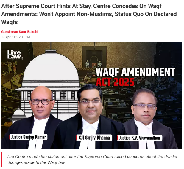 In contrast, challenges to the Waqf (Amendment) Act, 2025, which amended the Waqf Act, 1995, received swift judicial attention. Petitions alleging violations of the same constitutional provisions—Articles 14, 15, 25, and 26—were filed shortly after the Act received presidential assent on April 5, 2025. The Supreme Court heard these petitions on April 16 and 17, 2025, granting an interim stay and scheduling further proceedings for May 5, 2025. This rapid response, including substantive engagement and interim relief within 11 days of assent, contrasts sharply with the temple case’s 13-year delay and procedural dismissal.