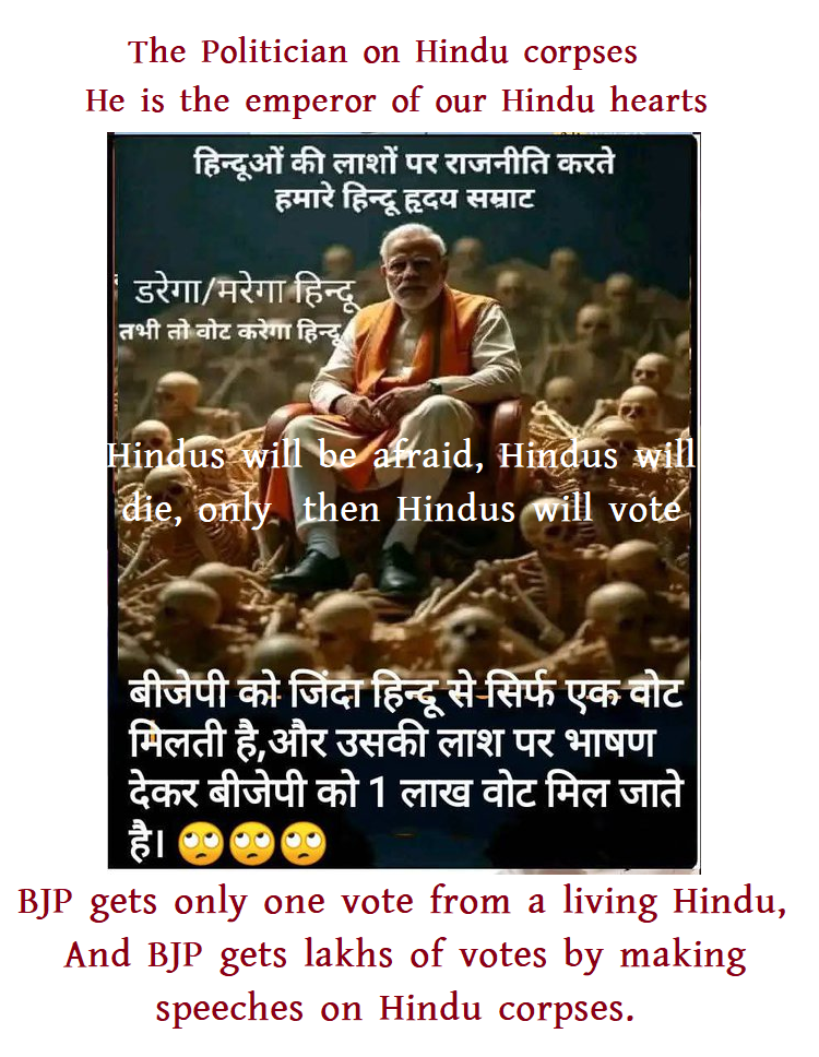 The media, complicit as ever, spews drivel about “peace” and “tensions,” ignoring Hindu families left to grieve without a single paisa from Modi’s bloated PM-CARES Fund. Hundreds of crores hoarded, yet not one job or rupee for the kin of the slain? Disgraceful. Is it because the victims are Hindus and the killers share the “Same DNA” as that of the RSS-BJP-Modi clique?