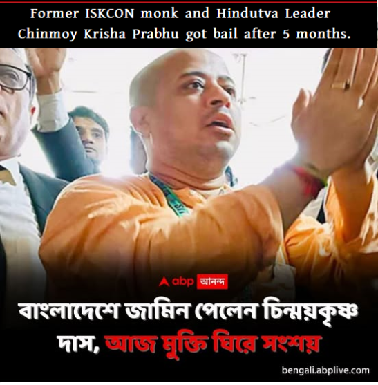 The popular ISKCON priest and Hindutva face of Bangladesh, has been granted bail by the Bangladesh High Court after spending over five months in jail on false sedition charges implicated against him. Das’s lawyer, Prahlad Debnath, confirmed that he is expected to be released following the court’s order, unless the Appellate Division of the Supreme Court stays the verdict.