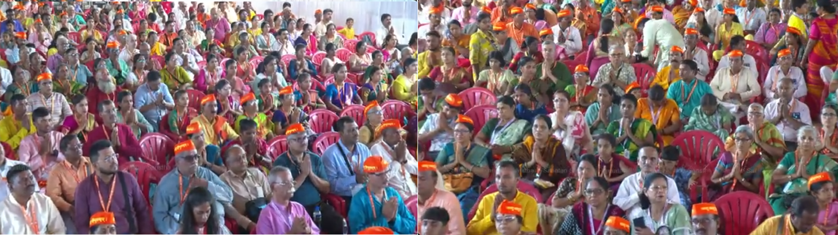 Upendra Bharti | HENB | Ponda (Goa) | May 17, 2025:: The Sanatan Rashtra Shankhnaad Mahotsav, marking the 83rd birth anniversary of Sanatan Sanstha’s founder, Dr. Jayant Balaji Athavale, and the organization’s silver jubilee, began on May 17, 2025, at the Engineering College Ground in Farmagudi, Ponda. The event, which will continue until May 19, 2025, has drawn over 25,000 seekers and devout Hindus from 23 countries, including 5,000 participants from Goa alone in a grand display of spiritual and cultural fervour.