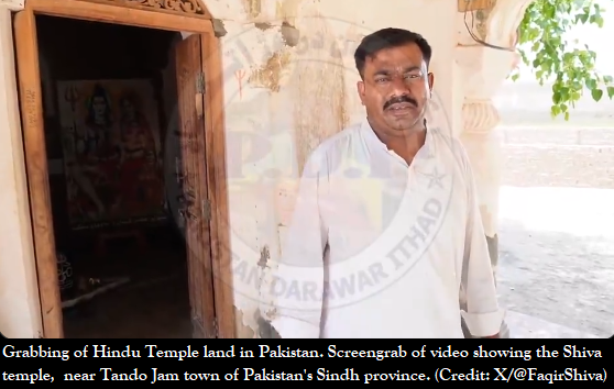 PTI | HENB | May 22, 2025:: The land on which a 100-year-old Shiv temple stands near Tando Jam town of Pakistan’s Sindh province has illegally been occupied by grabbers who have begun construction around it, a Hindu community representative said on Thursday, appealing to the government to stop the illegal establishment.