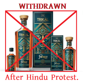 The controversy surrounding ‘Trikal’ began shortly after its debut in select markets, including Uttar Pradesh, Maharashtra, and Haryana. Priced between Rs 3,500 and Rs 4,500, the brand was positioned as a high-end single malt. However, the name ‘Trikal’, derived from Sanskrit and associated with Hindu philosophical concepts of time, drew strong criticism. Critics argued that the brand’s visual presentation, particularly the label featuring a stylized face with a prominent mark on the forehead, alluded too closely to spiritual symbolism.