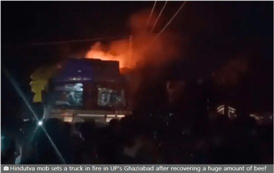 Upendra Bharti | HENB | New Delhi | June 5, 2025:: A disturbing incident of mob violence unfolded in Ghaziabad’s Amrala village on Tuesday, June 3, as a Hindutva group attacked a truck allegedly transporting beef, leaving the vehicle in flames and the Muslim driver and cleaner severely thrashed. The incident has sparked widespread concern about the rising tide of vigilantism and communal tensions in the region.