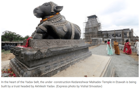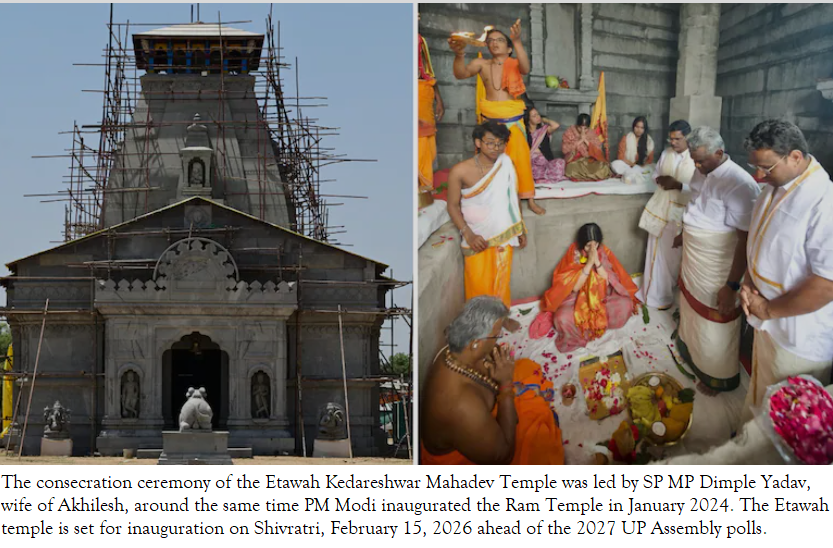 The consecration ceremony of the Etawah Kedareshwar Mahadev Temple was led by SP MP Dimple Yadav, wife of Akhilesh, around the same time PM Modi inaugurated the Ram Temple in January 2024. The Etawah temple is set for inauguration on Shivratri, February 15, 2026 ahead of the 2027 UP Assembly polls.