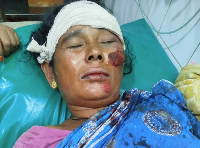 Shubhro Basak | HENB | Dhaka | July 24, 2025:: A Hindu widow named Nila Rani (44) was attacked in Manipur village of Atgaon union in Bochaganj upazila of Dinajpur in Bangladesh. She was assaulted on her way home after visiting her crop land at around 6 pm on Tuesday. The family of the injured Nila Rani alleged that due to past enmity, the three sons of Md. Mozammel Haque of the same union—former UP member Babul Rahman, Tariqul Rahman, Shariful Islam, and Babul Rahman’s son Munna—combined and carried out the attack in a planned manner. Nila Rani’s son Hridoy said that when his mother was alone while returning home, the accused suddenly attacked her with sharp weapons and fled. The locals rescued her and immediately admitted her to the Bochaganj Upazila Health Complex. Currently,
