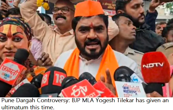 The dispute escalated on Saturday when Hindutva groups, including BJP MLA Yogesh Tilekar, staged a vigorous agitation at Laxmi Narayan Chowk last Saurday (Aug 2, 2025), demanding the dargah’s removal. The protesters chanted loud slogans, and MLA Tilekar warned that if the dargah isn’t removed within 15 days, a Maruti temple will be built on the site.